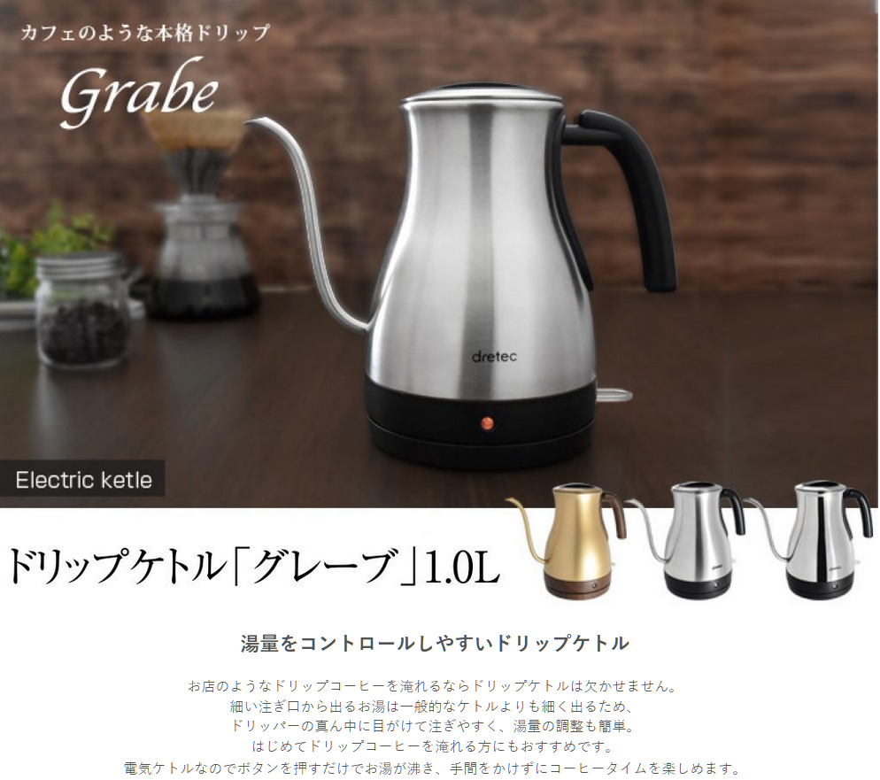 2021年3月末頃にヨドバシで購入した「ドリテック(DRETEC)ドリップケトル grabe PO-350SV」